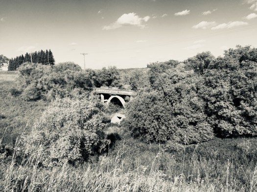In April, 2017 the spring melt began. For those of you that don’t recall, we had crazy amounts of snow that year and a record 7 or 8 snow/storm days. On my daily commute to work I pass by this old bridge that is no longer used but at one point in time must have been a very busy passing for farmers to the small nearby town of Margaret. Given the amount of water flowing through what is usually the dry valley that runs under the bridge, I had to walk down there and see it for myself and take some photos.