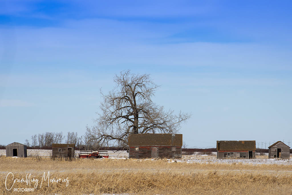 All that’s left is an old grainery and a shed of some sort. It was a warm but very windy day when I ventured out on my own and I didn’t feel like trekking through the snow which was still quite deep at the time.