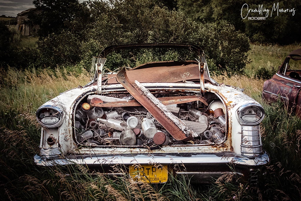 When I asked Henry about this old car, I was really hoping he could tell me something, and he did.  This old car was taking the family to church in a snowstorm when it got stuck and the engine blew. The car was parked in this spot and never moved.